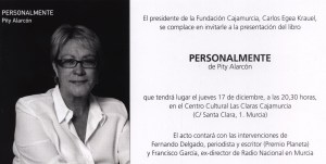 PERSONALMENTE, es el título del libro que presentaré el próximo jueves, a las 20,30 h, en el Centro Cultural Las Claras, de Murcia. Un libro en el que aparecen los perfiles de personajes que con este nombre se han publicado durante 62 semanas en el diario La Opinión, de esta ciudad. Tendré el honor de compartir el acto con el escritor y periodista, Fernando Delgado , y el ex director de RNE, en Murcia, Paco García. Dos magníficos profesionales y, sobre todo, dos entrañables amigos. Pero la noche será perfecta si cuento con la presencia de vosotros. Estais invitados.