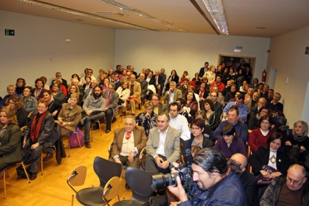 La foto es muy elocuente. Los amigos se encargaron de dejar pequeño el salón de actos del Centro Cultural Las Claras, de Murcia. Muchos de ellos permanecieron de pié, ante la imposibilidad de sentarse. Fue una noche especial para mí.