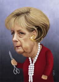 No he resistido la tentación de ofrecerles la imagen de la Canciller Angela Merkel en una caricatura de George. Me ha parecido magnífica y refleja fielmente la voraz vocación cortadora—cortadora de derechos económicos y de otro tipo—de la señora Merkel en el ámbito de la UE.