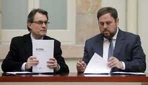 Como digno de estudio es el comportamiento ante el reto soberanista de Mas y Jonqueras porque, aunque el documento hecho publico en el que se habla de independencia, de constitución catalana, de referéndum independentista y no se cuantas cosas más, todo eso en un tiempo record de dieciocho meses, ha sido hecho público con la firma de los secretarios generales de CDC y ERC –Josep Rull y Marta Rovira– , lo cierto es que se ha publicado sin rueda de prensa conjunta de los grandes lideres Y claro, conociendo la megalomanía de ambos a la hora de organizar sus actos públicos, plenos de teatralidad y rimbombancia— no olvidemos lo que escribió George Orwell, “El nacionalismo es hambre de poder atemperada por el auto engaño”–, la falta de ruido del ultimo acto pone de relieve que no deseaban una comparecencia pública. Pero ahí está el documento y Rajoy transmitiendo la sensación de continuar de vacaciones.